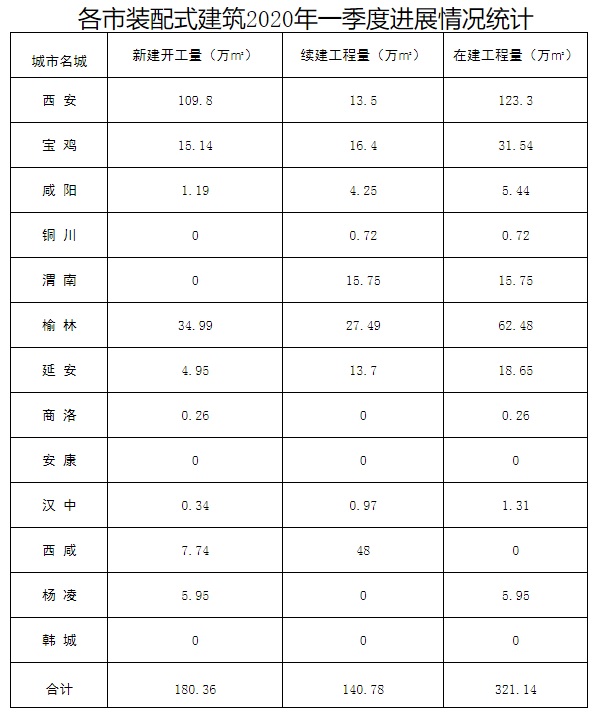 (二)項目建設。根據重點項目建設計劃及疫情防控等需求,西安市公共衛生中心、西安咸陽國際機場分流檢測中心等工程開工建設、投入使用。一季度裝配式在建建筑面積共321.14萬平方米,其中新開工180.36萬平方米、續建140.78萬平方米。(具體情況見附表)